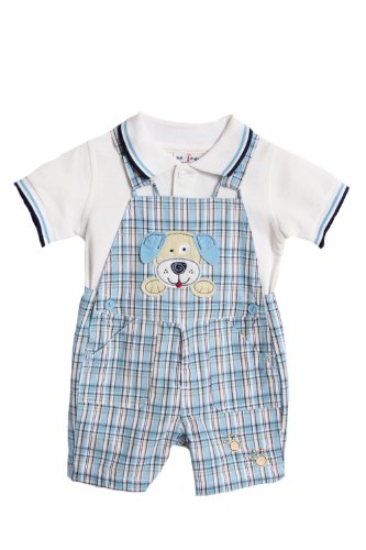 The Detailed Description of BT Kids Infant Boys Blue Puppy Dog Plaid Shortall Set-18 MonthsFeatures