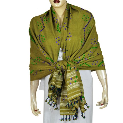 These handmade silk neck scarf mufflers are created by the hereditary weavers of Benaras. The tools used are very basic in nature- wooden blocks for marking designs on silk. A muffler (also called a scarf) is a piece of textile, often long and narrow, usually worn on or near the head, for warmth, fashion, cleanliness, or religious purposes. With cultural exposure from Europe, these scarves found their way to the western wardrobes too.